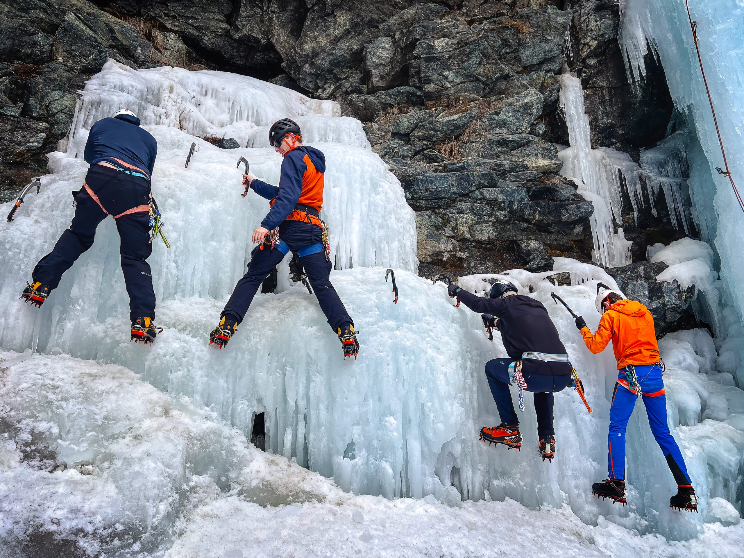 Das Wochenende war ein grösserer Erfolg, als jeder von uns hätte erwarten können. Einige schwangen zum ersten Mal die Eisgeräte, während sie sich schnell mit dem Eiskletterfieber ansteckten. Für andere gab es mehrere erste Vorstiegslängen – ein Beweis für die raschen Fortschritte, die viele im Laufe dieser paar Tage machten. Und für viele der bereits erfahrenen Eiskletterer war es die perfekte Gelegenheit, ihre Vorstiegsfähigkeiten weiter auszubauen. Bis zum nächsten Jahr!