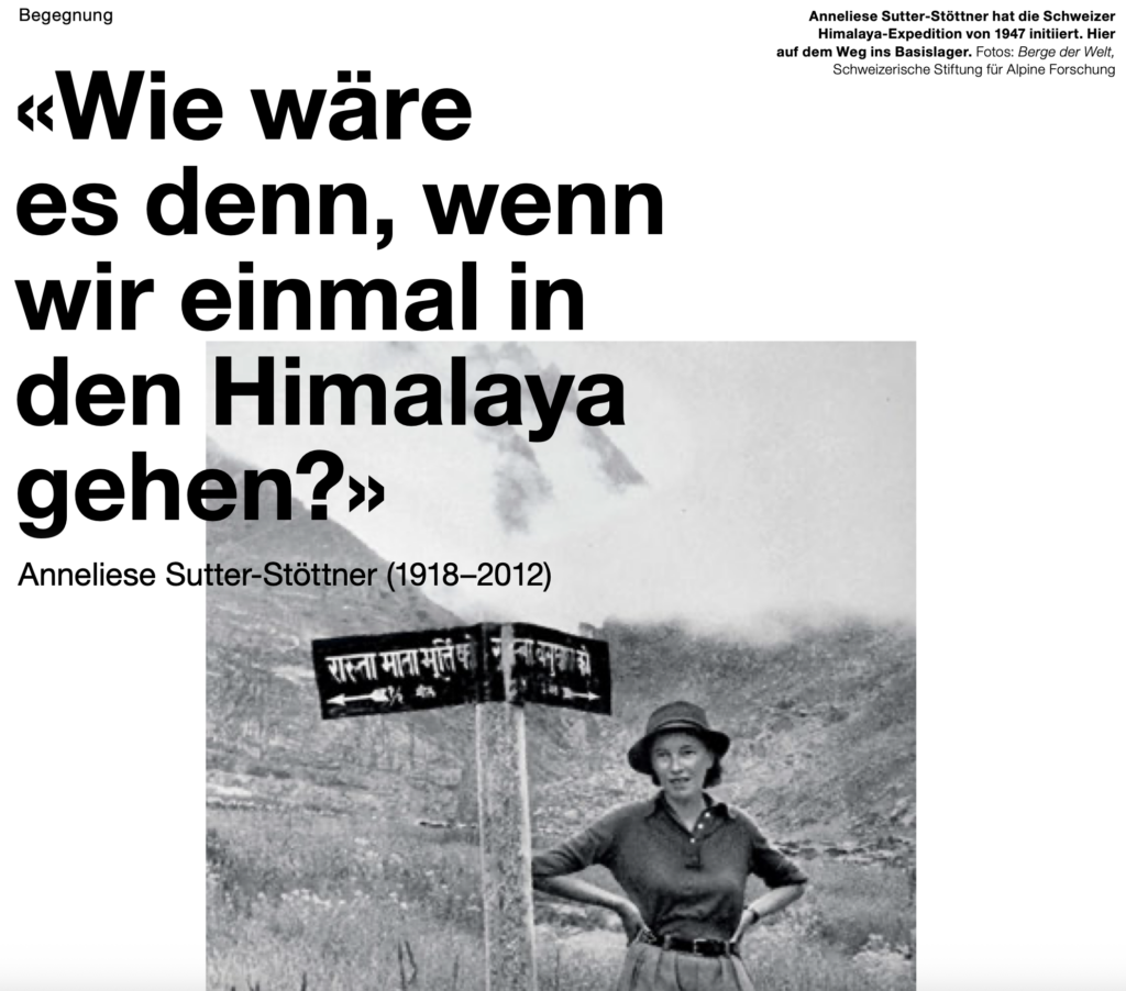 Im Jahr 1947 begibt sich eine Schweizer Expedition in den Garhwal-Himalaya, organisiert von der Schweizerischen Stiftung für Alpine Forschung. Diese Expedition ist aus mehreren Gründen sehr interessant: Initiantin war Anneliese Sutter-Stöttner, als Frau in dieser Rolle zu dieser Zeit sicher einmalig. Ausserdem war neben unserem Clubmitglied André Roch auch Tenzing Norgay, Erstbesteiger der Mt. Everest, Teilnehmer der Expedition und Erstbesteiger der Balbala zusammen mit Anneliese.
